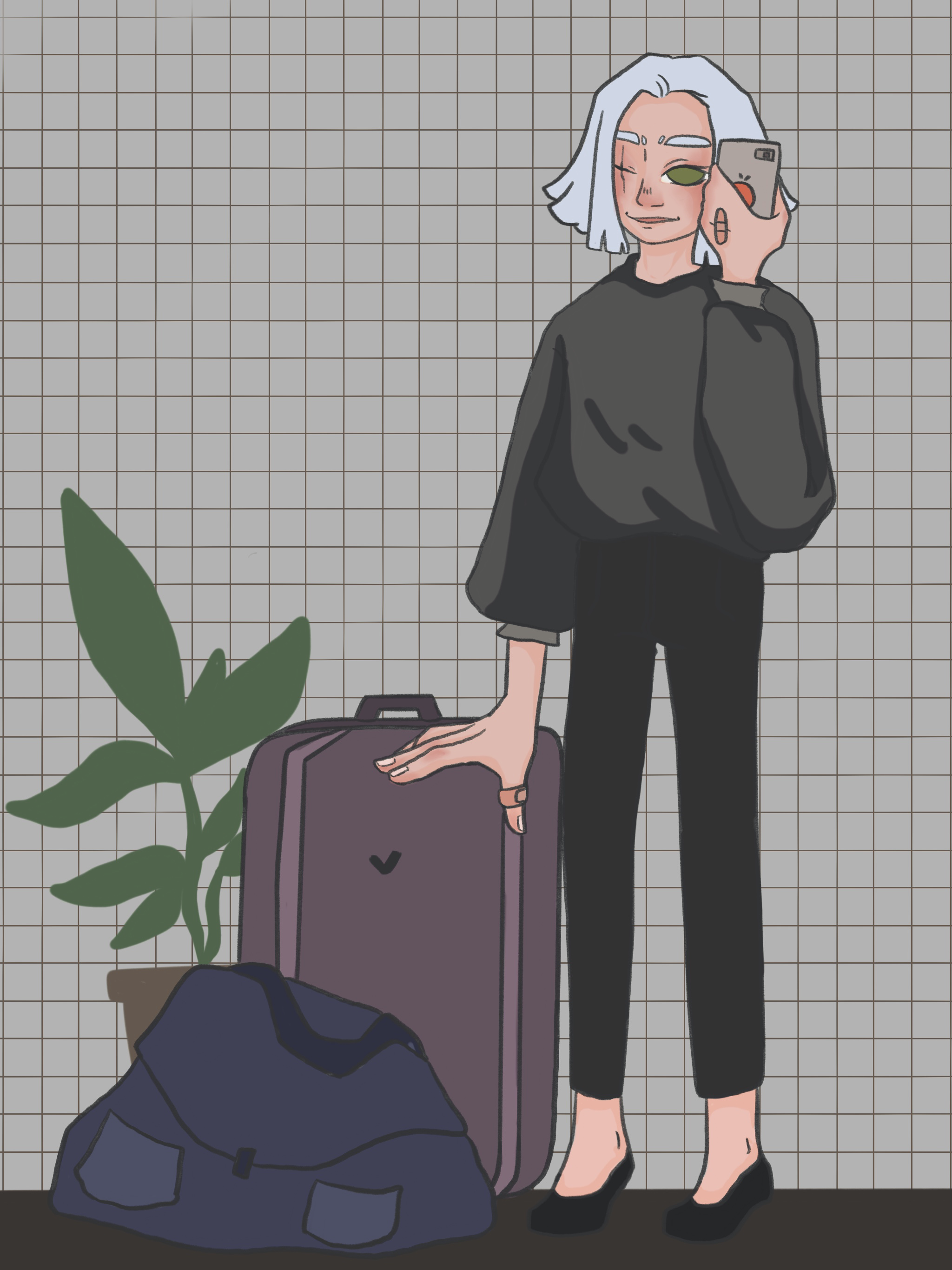 Lilith stands by her suitcase, dressed in her usual city clothes. She feels a mix of nervousness and excitement, ready to begin her big adventure!