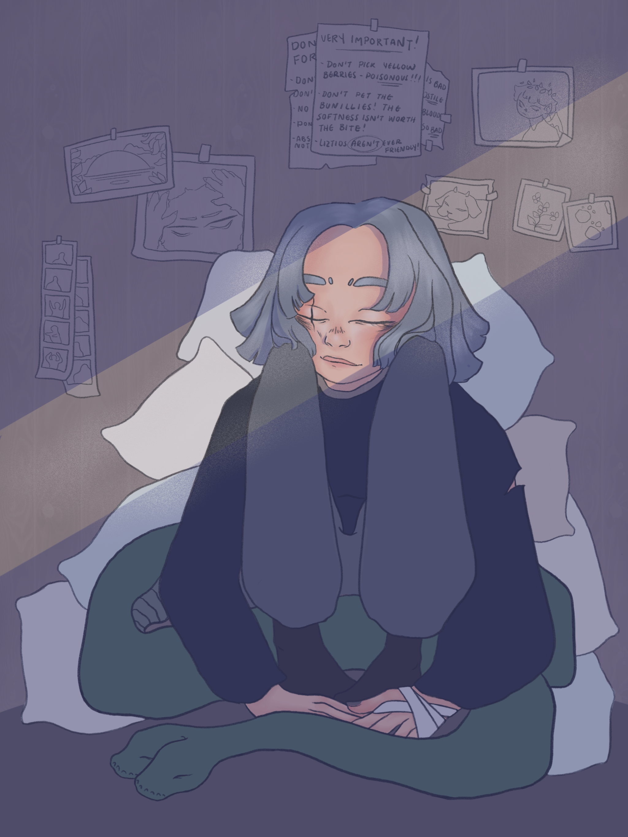 As happy and exciting her new life is, there are days where Lilith feels lonely and misses the familiar comfort of back home in the city. Sometimes the wilderness is tough and some creatures aren’t friendly, causing Lilith to be covered in injuries and dirt and having to patch herself up. Despite this, she is determined to accept and love every aspect of her life, even the rough days.