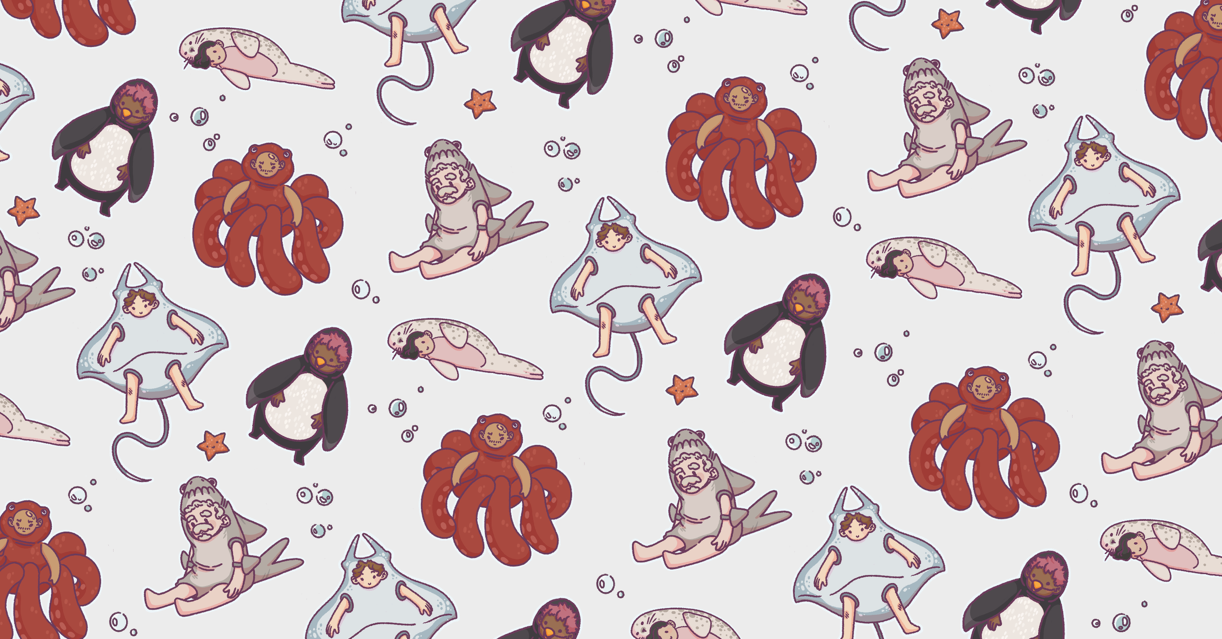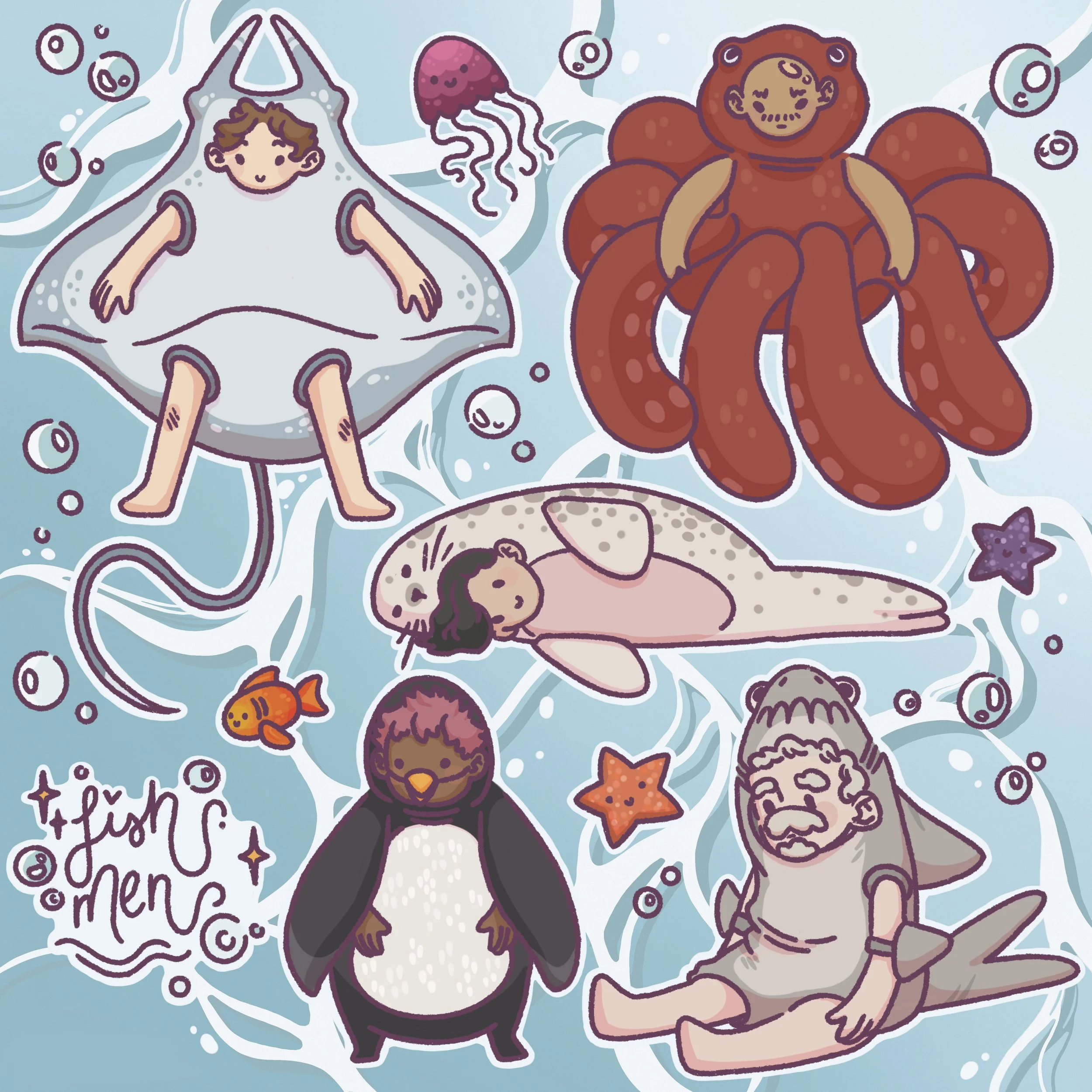 The collection features five illustrations inspired by: a stingray, octopus, seal, penguin, and shark.
